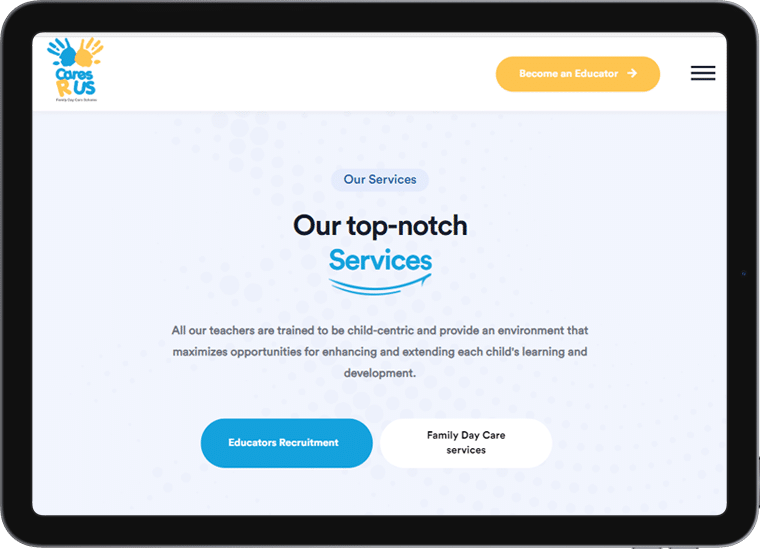 Cares R Us is a registered Family Day Care office providing stable job opportunities for early childhood educators. They provide educators the tools and training as needed to support families across Australia.